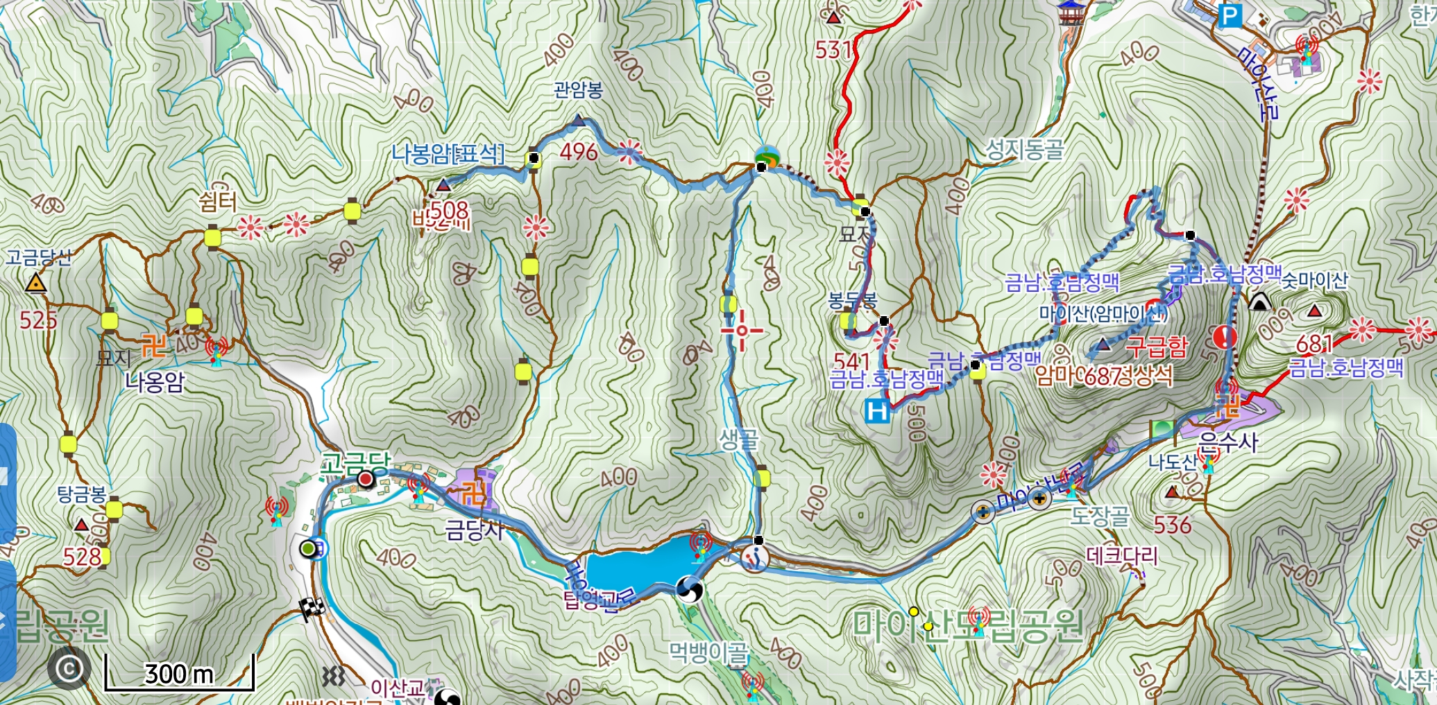 산행계획은 고금당골~비룡대와 능선을 타고 봉두봉에서 암마이봉을 거쳐 내려와야 한다.