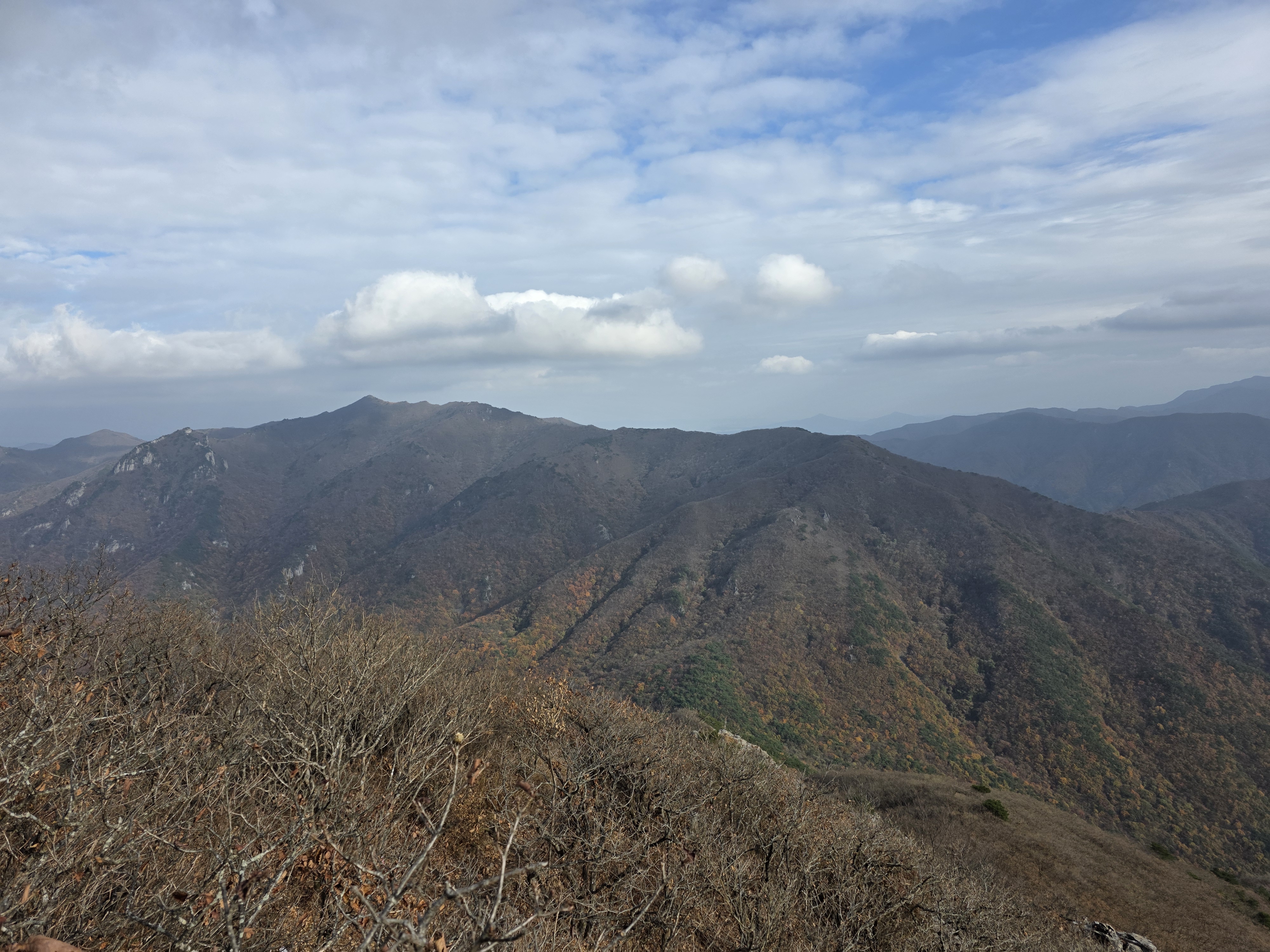 구름 가득했던 가지산이며 1000m 넘나들던 능선길이 파노라마처럼 이어진다.