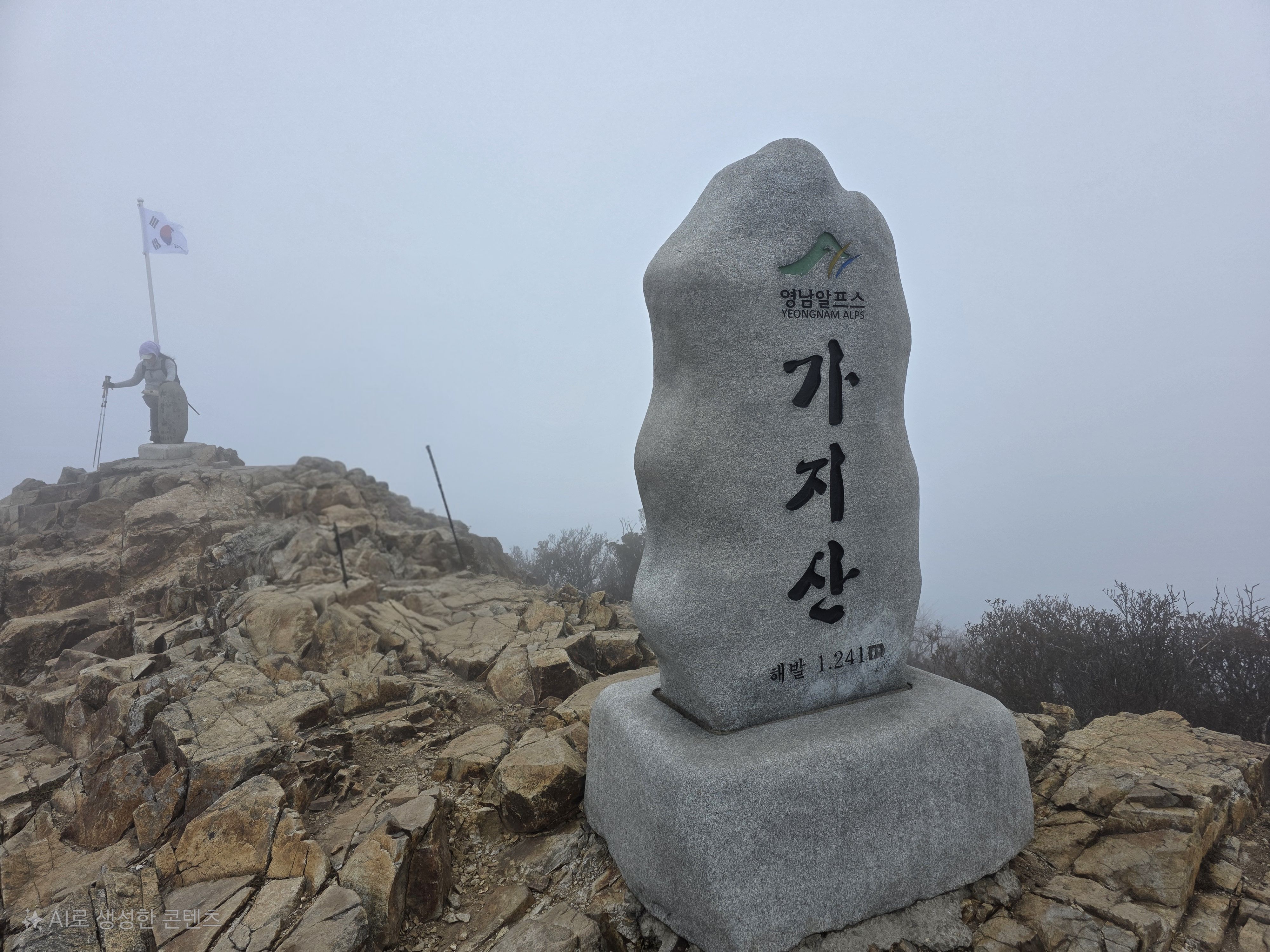 앞꿈치로 콩콩 찢듯 통증을 참으며 가지산 정상에 오른다.