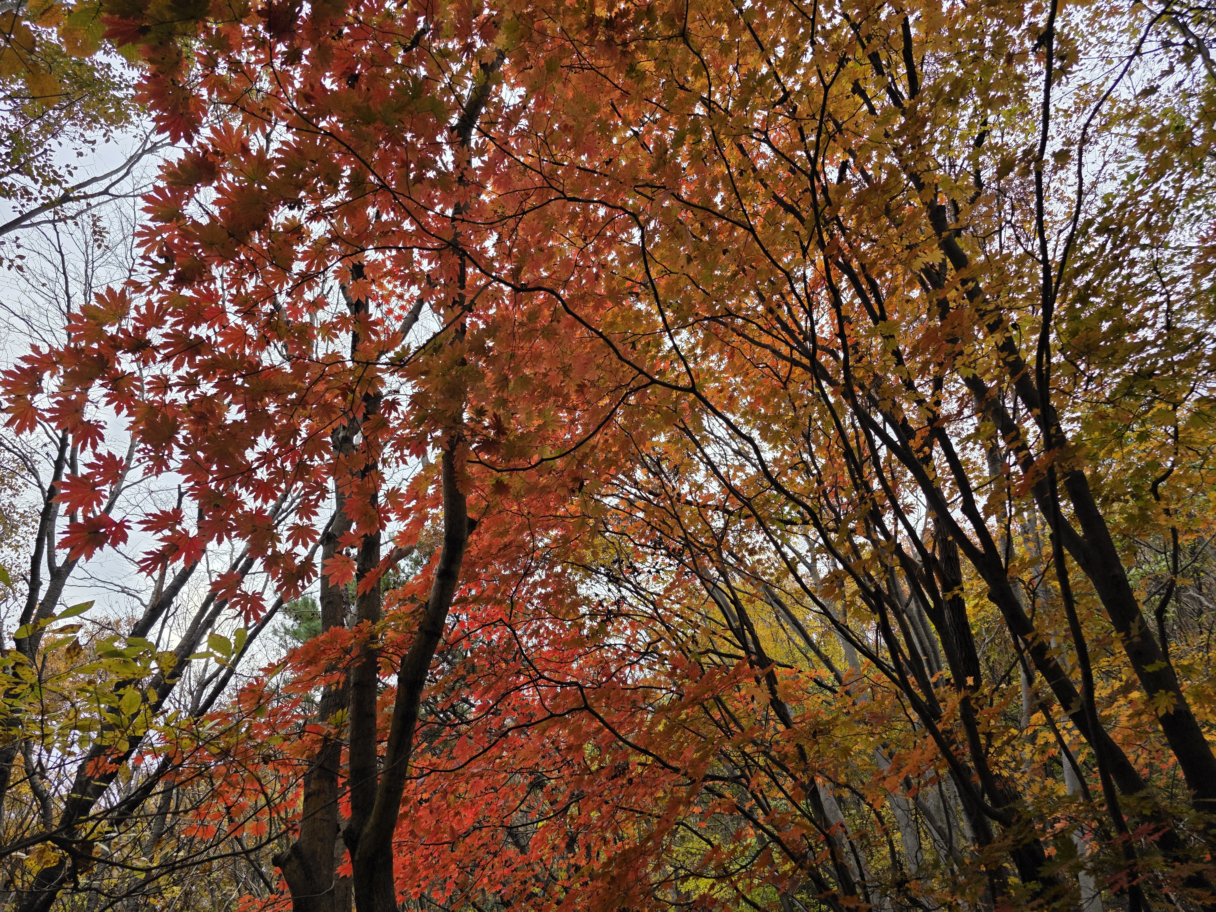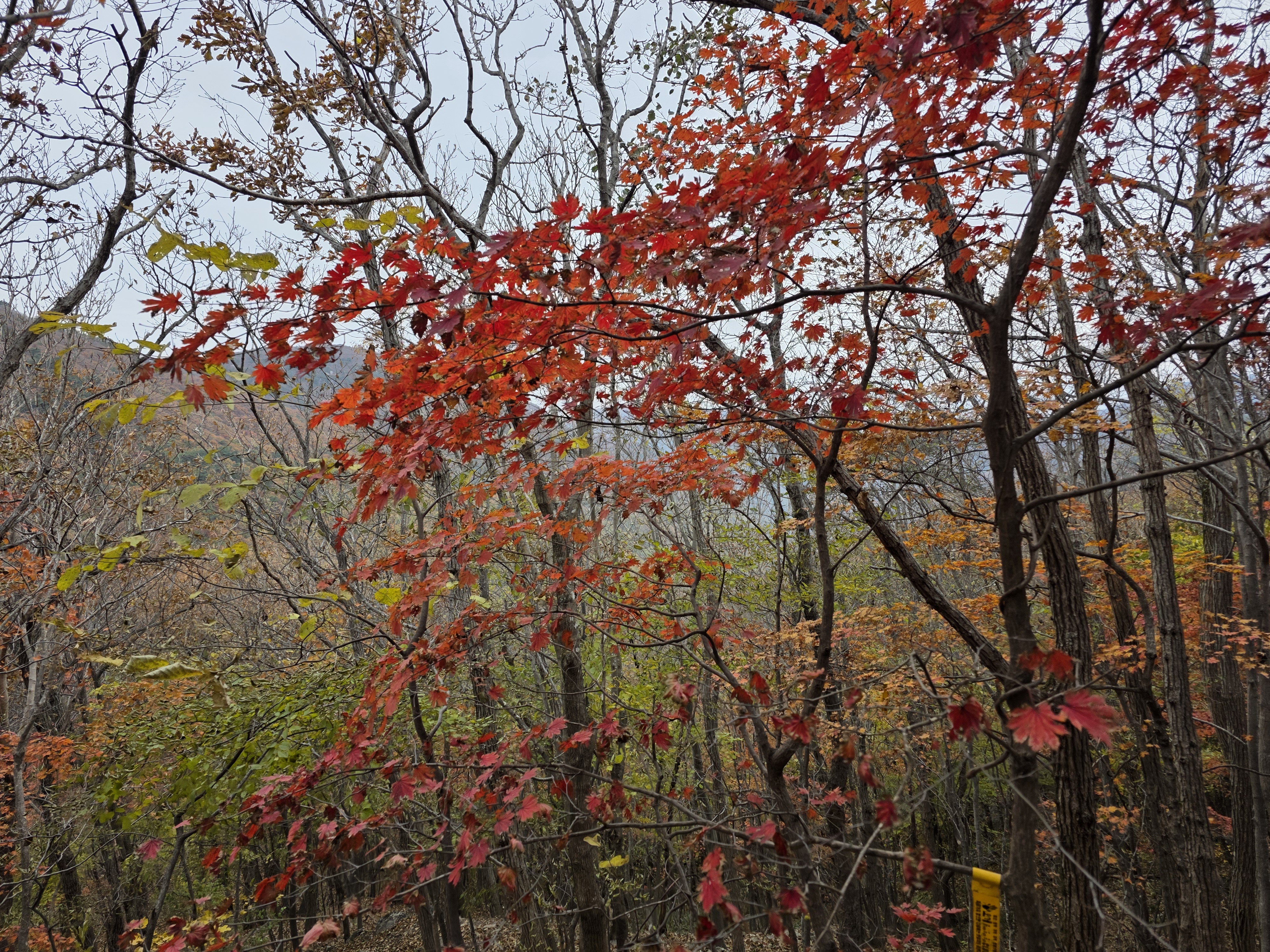 능선 내내 보이던 비단같이 물든 단풍 숲을 지나온다.