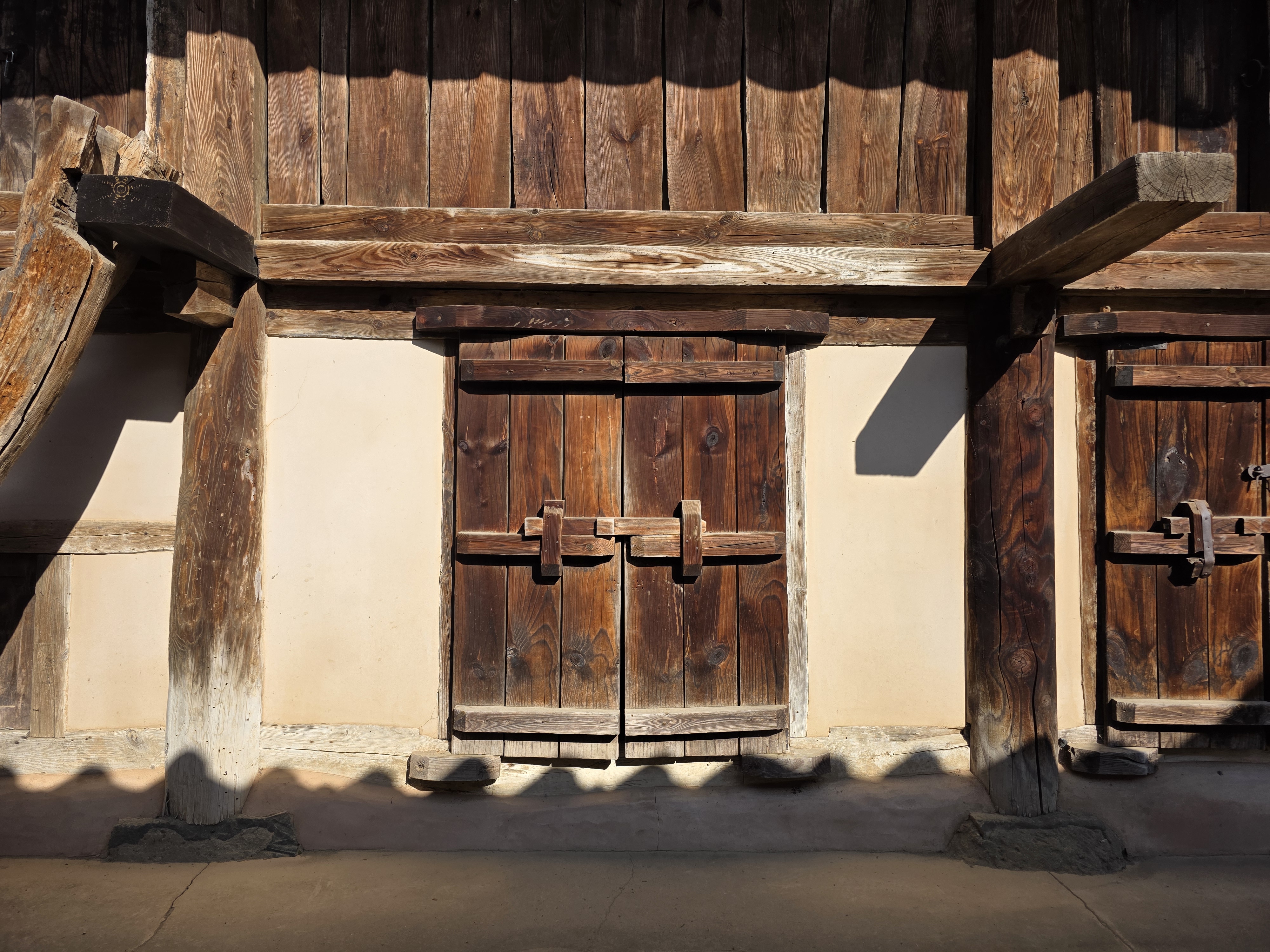 해탈교 지나 마곡천을 건너기전 - 황토와 기와로 어우러진 담장 안에 자리 잡은 단풍나무.