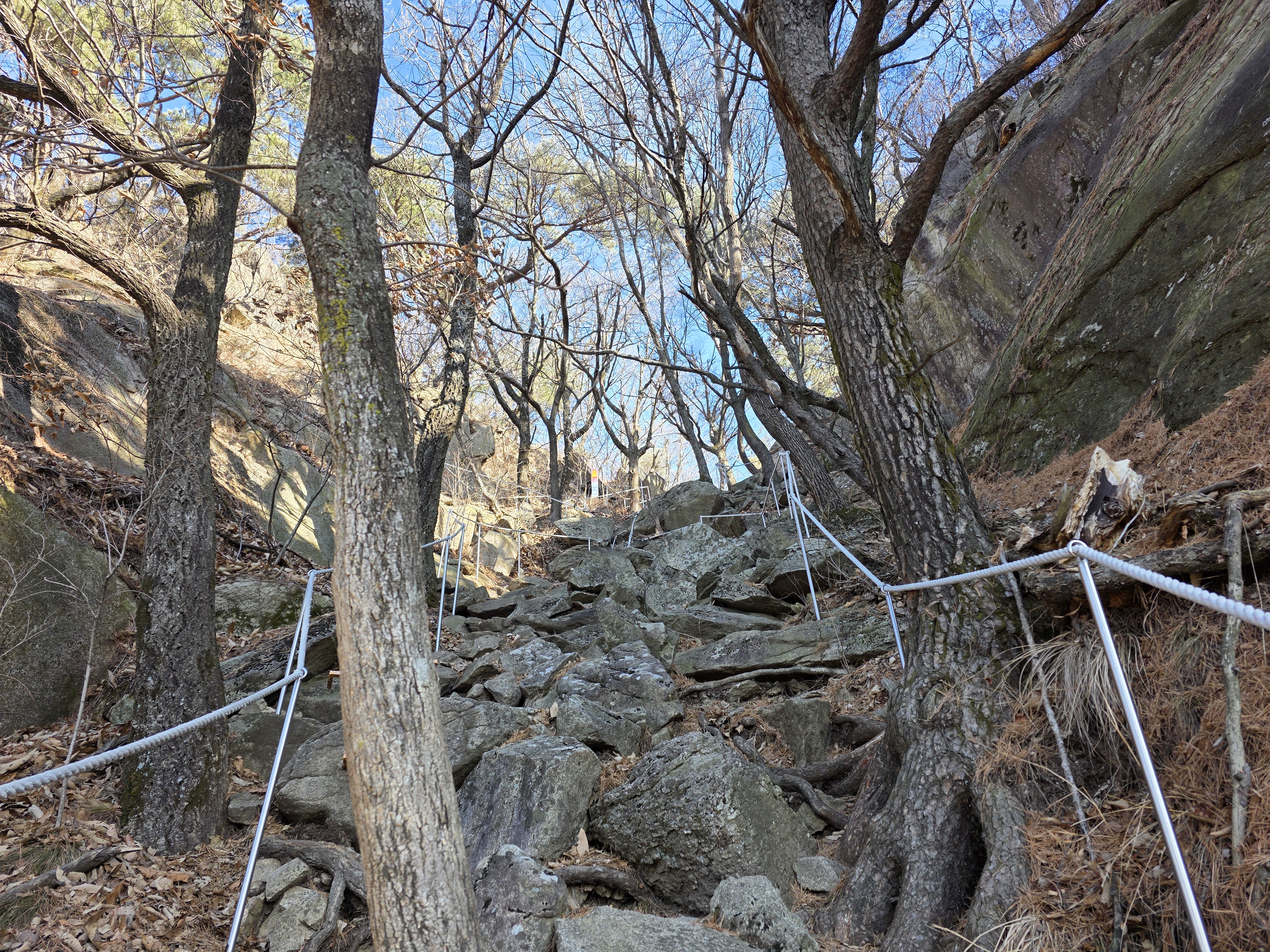 험한 곳엔 나무계단과 난간이 있어 견딜만하지.