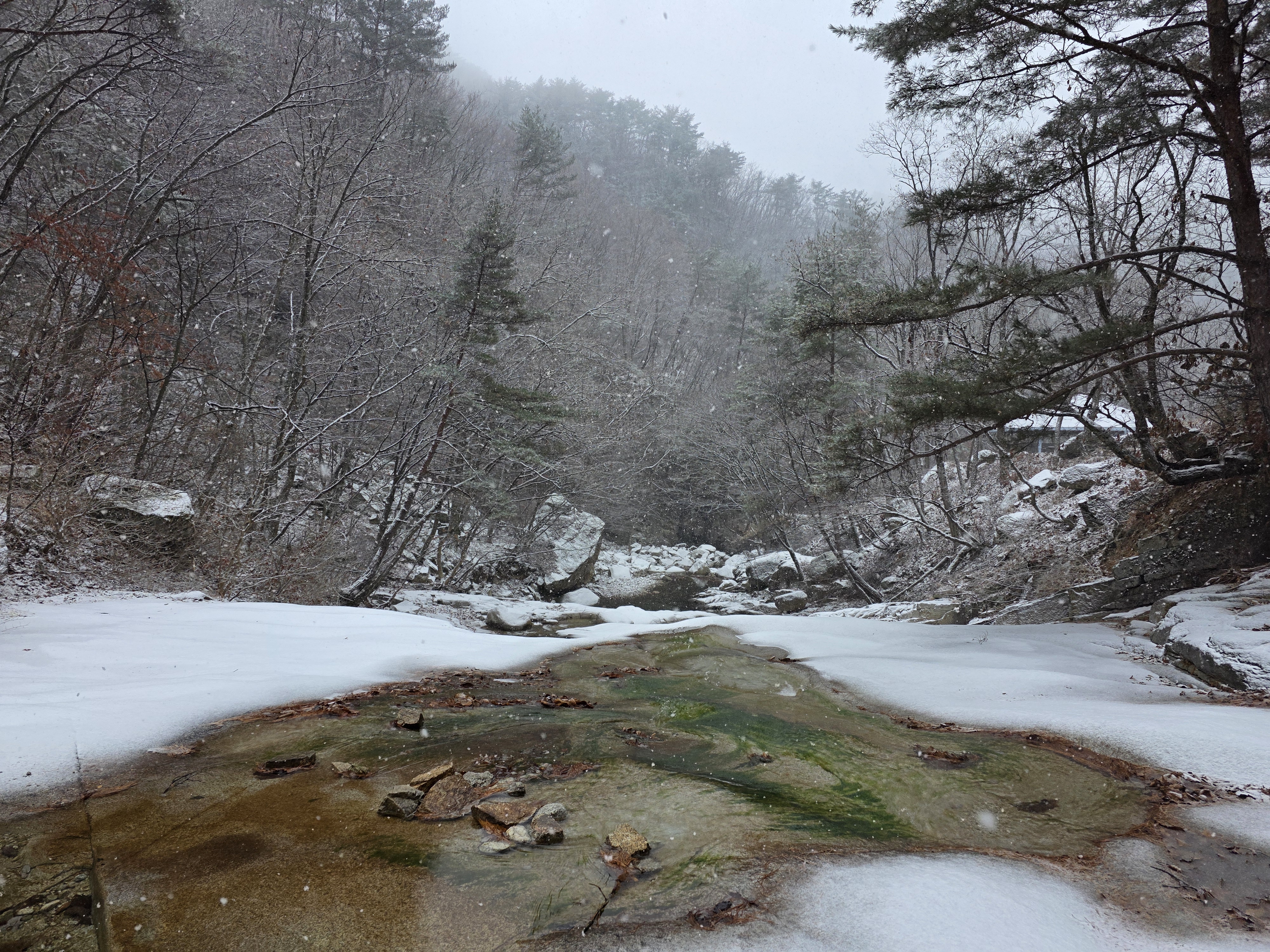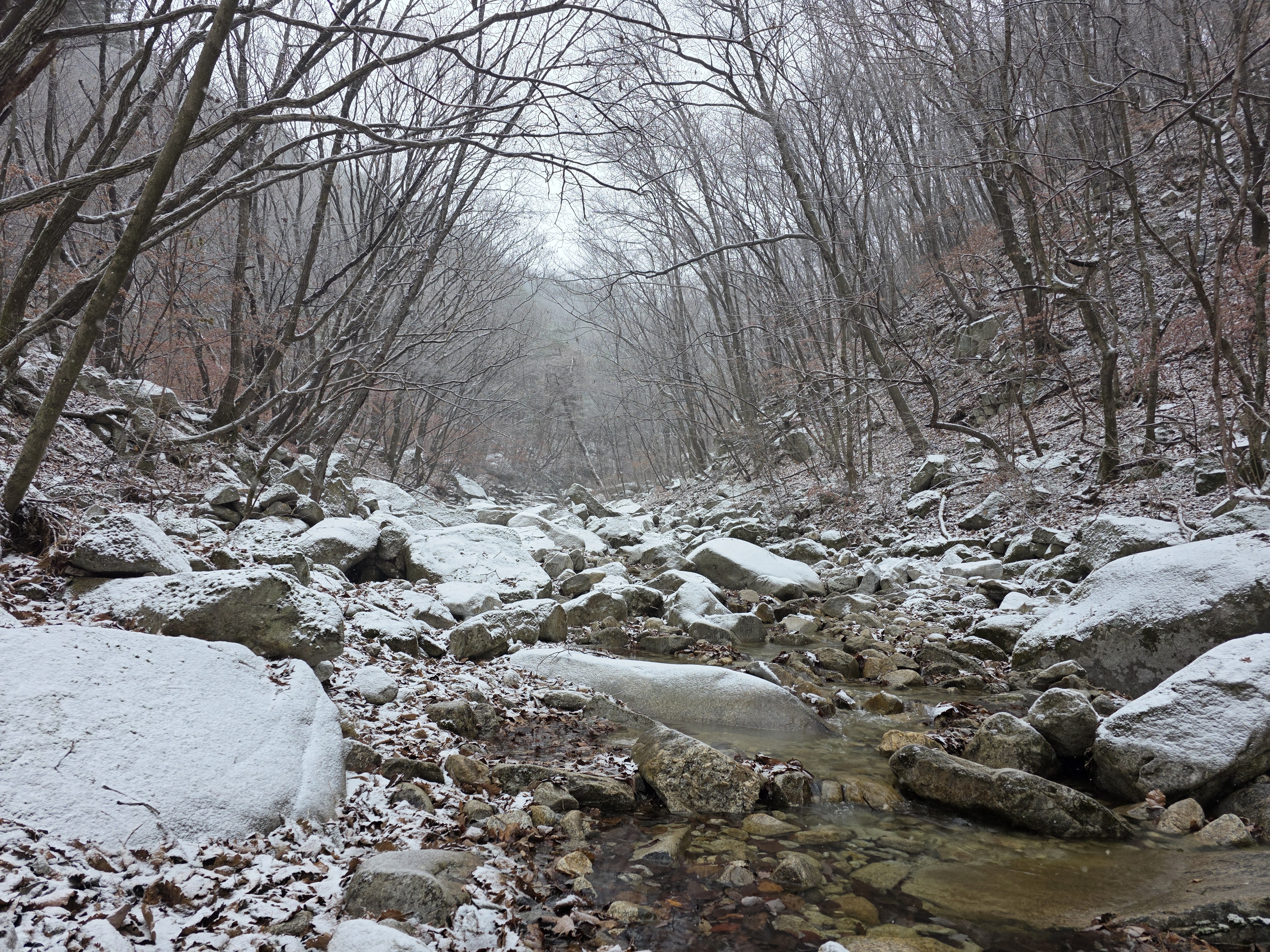 1.5km 남짓 낙엽에 속아 계곡물에 발이 빠져버리고 만다.